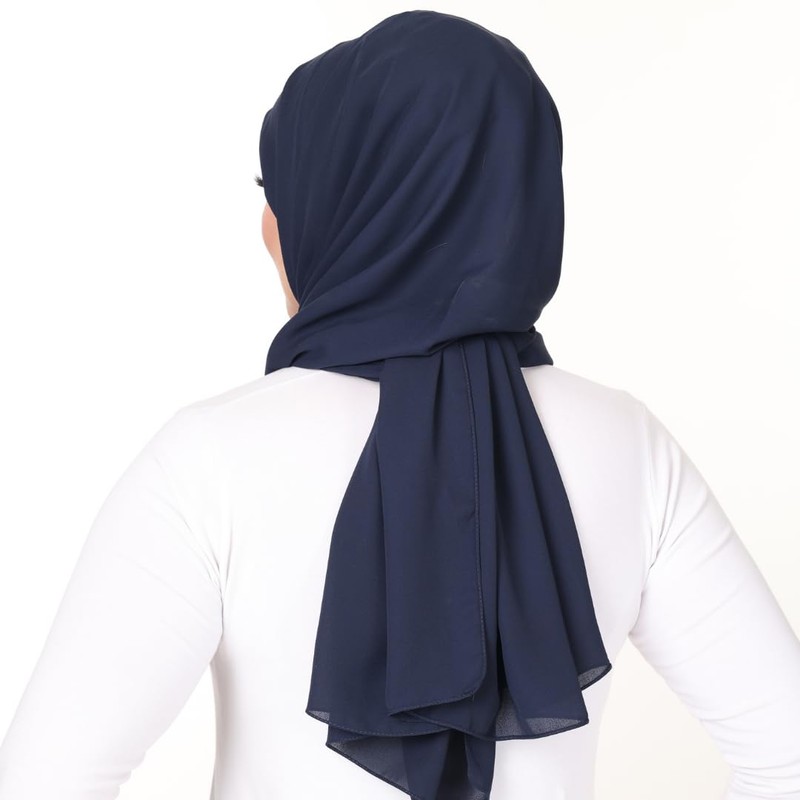 TUĞRALI TESETTÜR Premium Chiffon Hijab Scarf, Black, Modest Head Cover for Women (Navy Blue)