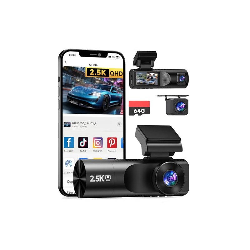 - TUIFAC 3 Channel Dash Cam, Dash Cam 2.5K Front and Dual 1080P Inside/Rear with 64GB SD Card, Wi-Fi Dash Camera for Cars with Night Vision, G-Sensor, 24H Parking Mode, 1.97”IPS, Support 256GB