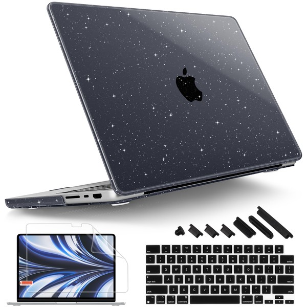 Tuiklol for M4 MacBook Pro 14 inch Case 2024-2021 Release A3112 A3401 A3185, A2992 A2918 M3 A2779 M2 A2442 M1 Pro/Max Chip,Hard Shell Case+Screen Protector with Touch ID, Sparkly Black