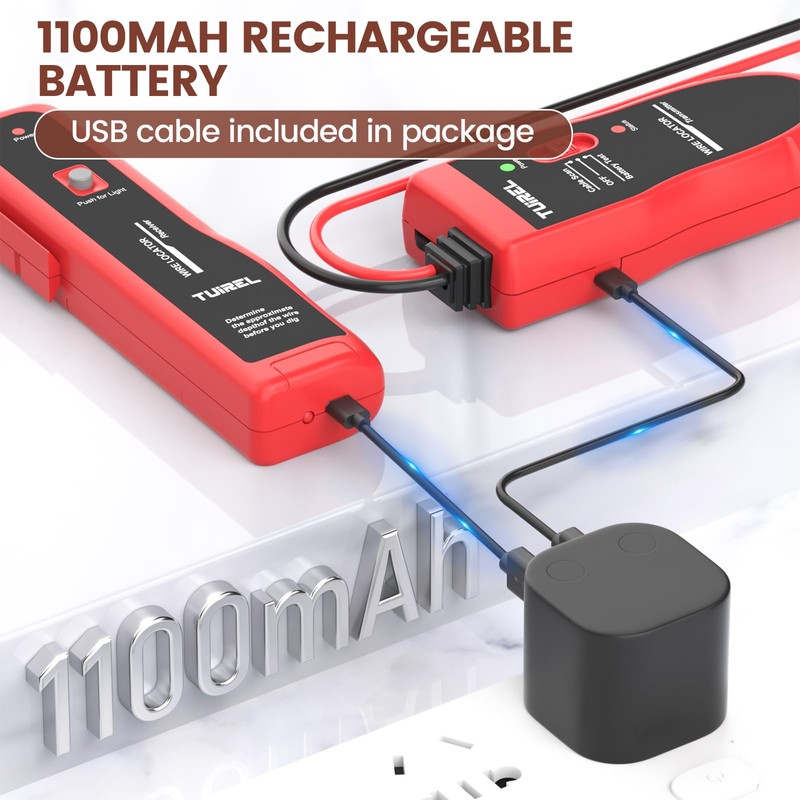 - STRONG IN BOTH PROFESSIONAL AND PRACTICALITY - This underground cable locator wire tracer electrical circuit breaker finder is highly practical and can track wires and cables up to - feet deep and feet in length; . V rechargeable lithium-ion batteries power both transmitter and receiver; Underground wire tracer takes hours to be fully charged and can last up to hours; The underground locator wire tracer comes with a USB cable, so no additional purchase is required