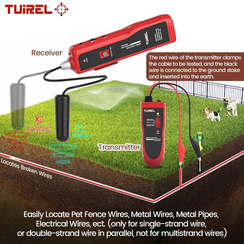 - ARE YOU STILL ANNOYED BY UNDERGROUND CABLE FAULTS - The underground wire tracer is designed for single-strand or parallel double-strand wires and is unsuitable for multistrand wires. Double Strand Wire: The product will work, but you need to try another line, if you don't find a breakpoint on another line. This upgraded underground cable locator circuit breaker finder is suitable for locating and tracking buried and hidden wires, cable locators, wire trackers, dog fence wire break locators, invisible fence wire break locators, electrical wire tracers, electric fence testers, etc