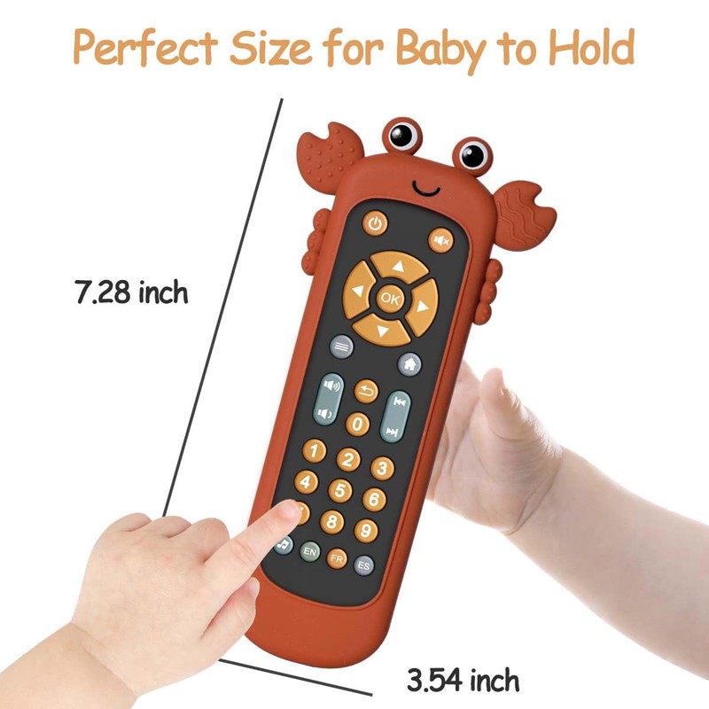 TuiVeSafu Baby TV Remote Control Toy with Cute Crab Soft Silicone Cover Teething Toy, Realistic Baby Musical Remote Control Toy with Light & Sound, Educational Toys with 3 Language for 6m+Toddlers