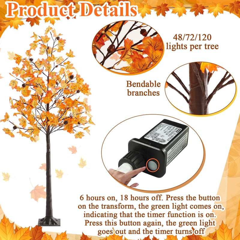 • Beautiful Appearance: featuring vibrant, lifelike leaves and bright LED lights, these maple tree with lights create a beautiful autumn ambiance; Able to adjust 8 lighting modes, suitable for indoor or outdoor Thanksgiving decorations