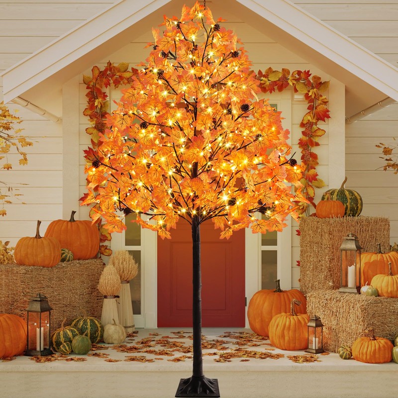 Tujoe 1 Pack 2025 Upgrade 8ft Lighted Maple Trees 8 Modes with Timer 264 LED ...