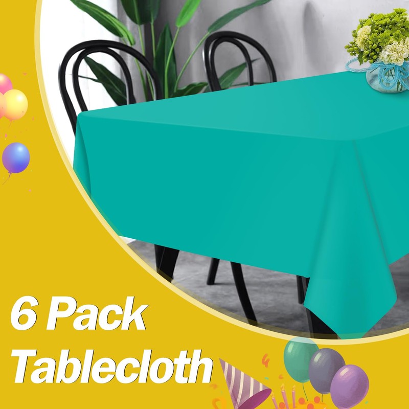 tujol Teal 6 Pack Plastic Table Cloth 54" x 108", Disposable Tablecloths Rectangle Table Cover, Plastic Tablecloths for Parties
