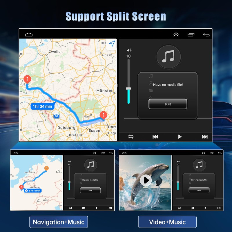 • 【1080P High-Resolution Display】Featuring a 9inch high-definition touchscreen with a resolution of 1080P, this car stereo delivers clear and bright visuals. Whether you’re using navigation, checking maps, or watching videos, you’ll enjoy a detailed and vibrant display. The responsive touch interface ensures a smooth and intuitive experience