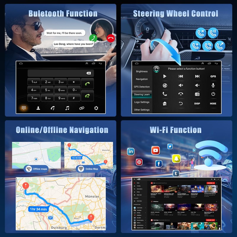 • 【Live GPS Navigation & WIFI Connection】Navigation features in car stereos help you with traffic updates, real-time directions, and simple maps. Integrated GPS makes you as the driver more relaxed on the road knowing you have access to the fastest routes, avoid traffic jams, and find the the exact place you are looking for quickly and easily. Voice navigation keeps your eyes on the road, listening for clear instructions on where to go next