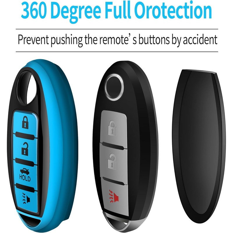 Tukellen Compatible with Nissan Key Fob Cover Soft TPU Key Case for Infiniti X-Trail Rogue Altima Quest Pathfinder Sentra Patrol CIMA Fuga Armada Teana Murano 4 Buttons Key Shell-Blue