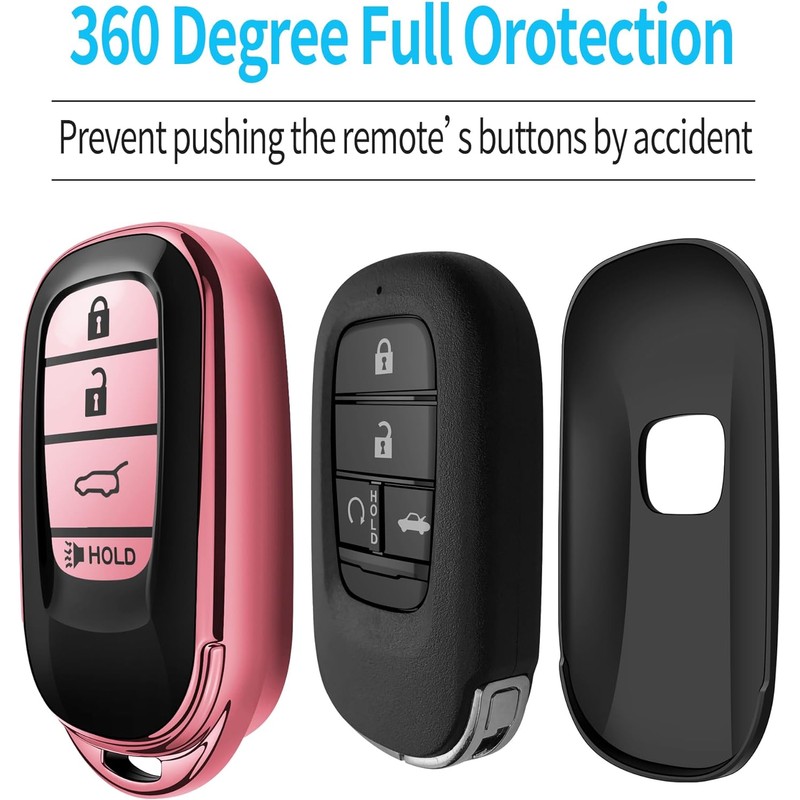 Tukellen for Honda Key Fob Cover, Premium Soft TPU Full Protection Key Fob Case for 2022 2023 2024 2025 Accord Civic HR-V CR-V Pilot Smart 4-Buttons Smart Remote Key Protector (Pink)