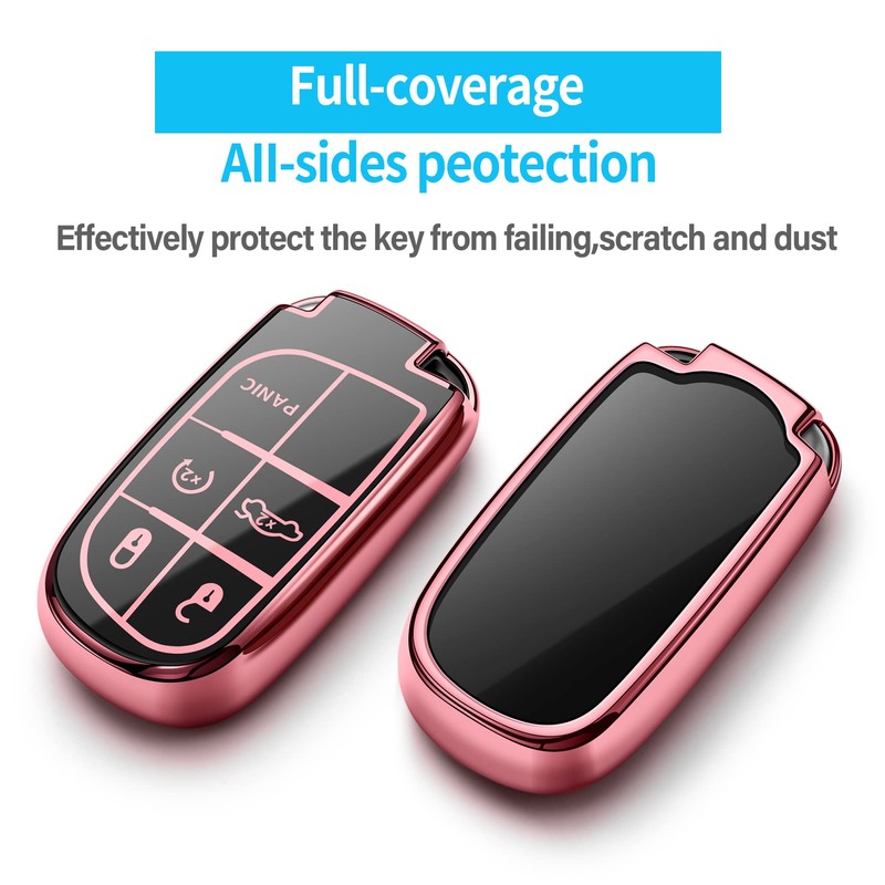 Tukellen for Jeep Key Fob Cover Special Soft TPU Key Case Key Shell Compatible with Grand Cherokee Renegade Chrysler Dodge RAM Journey Dart Fiat Durango Challenger Key Shell (Pink)