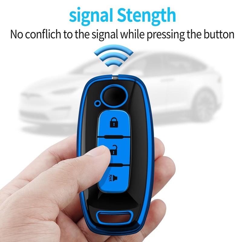 Tukellen for Nissan Key Fob Cover, Premium TPU Plated Case for 2023-2025 Pathfinder Rogue Ariya Versa Kicks Sentra Armada Murano Smart Remote Key Protector (Blue, 3 Buttons)