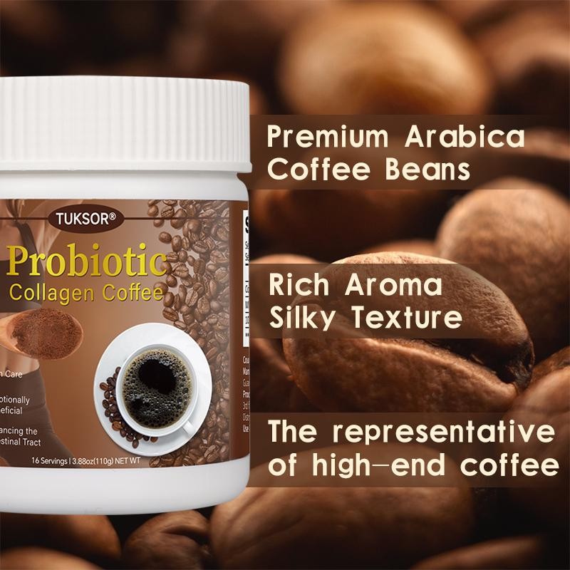 - TUKSOR Probiotic Collagen Coffee: Revitalize Your Skin, Support Digestive Health, and Boost Energy with Collagen and Probiotics in Every Cup.