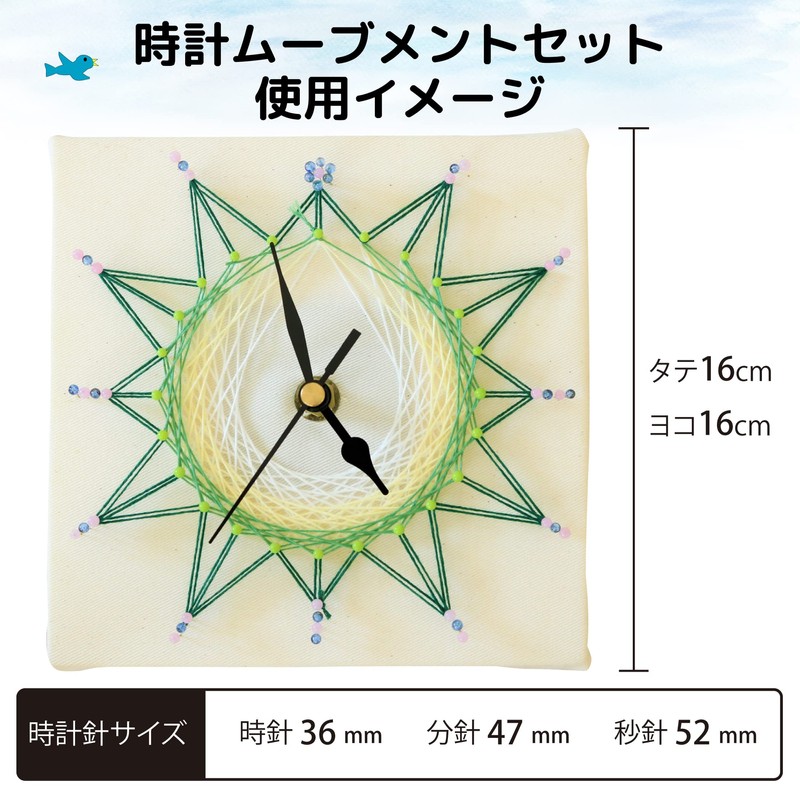 Sweep type that moves smoothly without a clicking sound when the second hand is moved. No noise even when sleeping or in quiet environments. Hour hand: 1.4 inches (36 mm), minute hand: 1.9 inches (47 mm), second hand: 2.0 inches (52 mm); Movement size: Length 2.2 inches (56 mm) x Width 2.2 inches (56 mm) x Height 0.6 inches (15 mm) (excluding shaft). *This product is for crafts. Please check the manufacturer before using the ready-made watch.