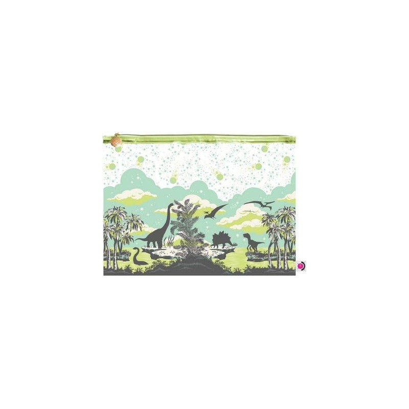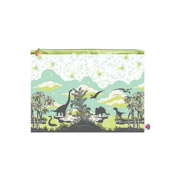 Tula Pink Meteor Clear Plastic Zipper Project Bag, Large 18 x 13 inches, with whimsical Dinosaurs Design for Sewing, Quilting or other Storage Use, Green/clear, TPXLBAG2