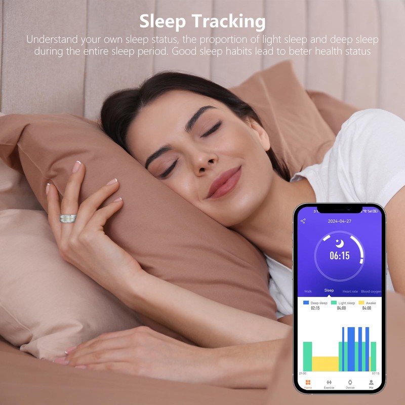 - ALL-DAY WEARABLE DESIGN: Ultra-light stainless steel ring is comfortable enough to wear all day and night with IP68 waterproof protection for swimming and rainy activities