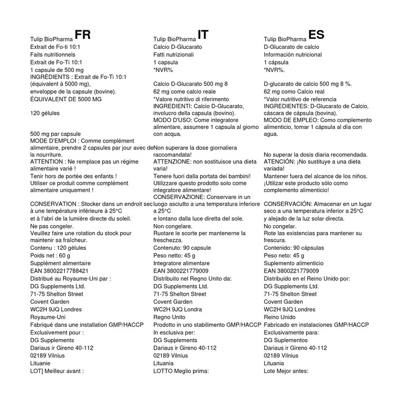 Tulip BioPharma Tulip BioPharma Calcium D-Glucarate 500mg 90 Capsules, 3rd Party lab Tested, High Strength Supplement, No Fillers or Bulkers, Gluten and GMO Free