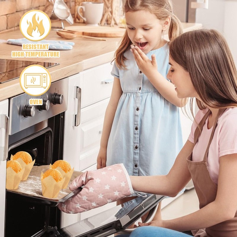 Tulip Cupcake Liners,50 Pieces Cupcake Muffin Liners Wrappers Baking Cups for Weddings, Birthdays, Baby Showers (B Beige)