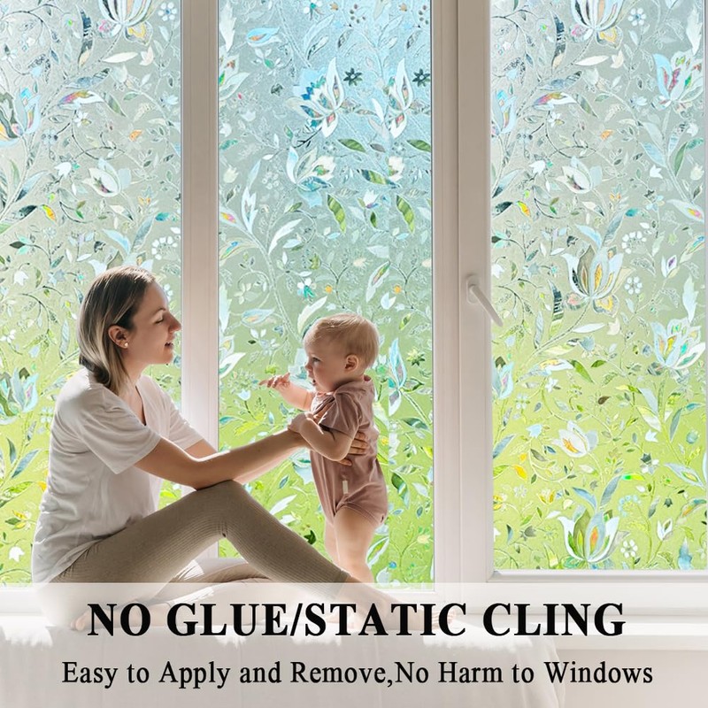- Easy Application--Unlike traditional glue window film,static cling window film only need some (soapy) water to apply,you can adjust position as you want,no need to worry about making mistake during installation.Also,it can be easily trimmed to required size or shape with scissors or utility knife.