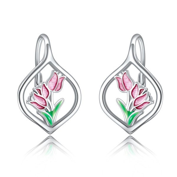 Tulip Earrings Sterling Silver Tulip Flower Leverback Earrings Pink Tulip Jewelry Gifts for Women