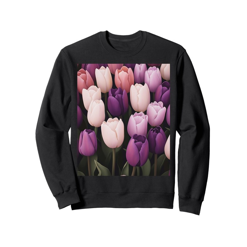 - This tulip pattern art offers a vibrant floral tapestry featuring realistic tulips in shades of pink, purple, and peach. Perfect for flower enthusiasts and garden lovers, this design evokes serenity, joy, and beauty. Ideal for art collectors.