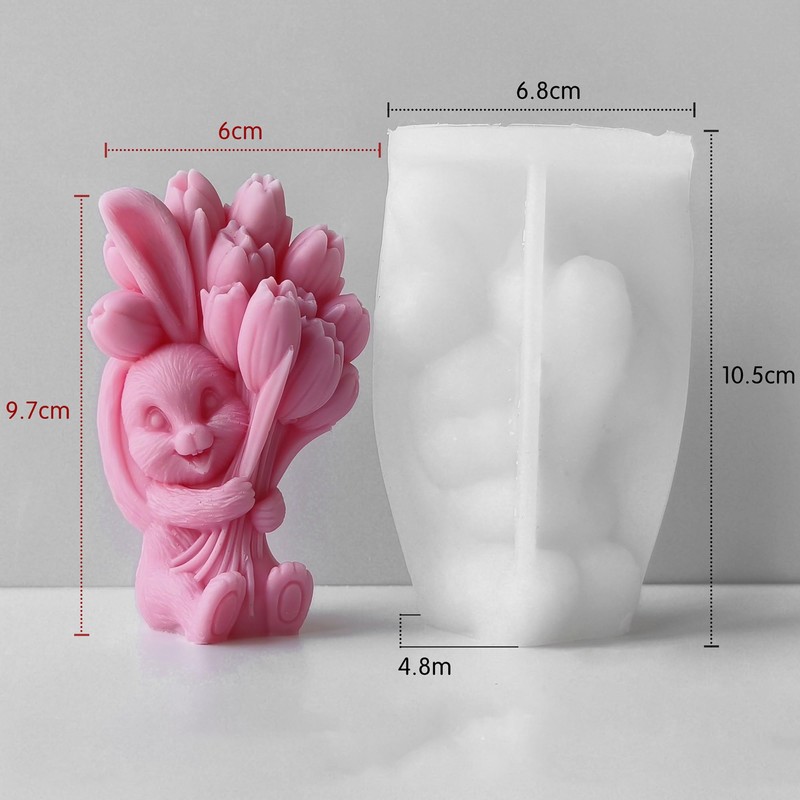 Tulip Rabbit Silicone 3D Flower & Rose Mold - Peony & Candle Mold for Resin, Clay & Soap Making - Craft Supplies