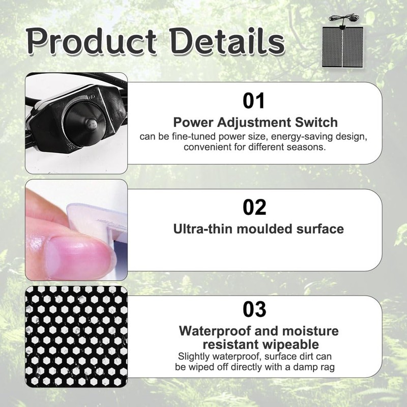 • Long-term heat and efficiency: equipped with temperature regulator, the heating pad promises even heat. Ideal for continuous operation in terrariums, ensures a stable climate environment for reptiles and amphibians.