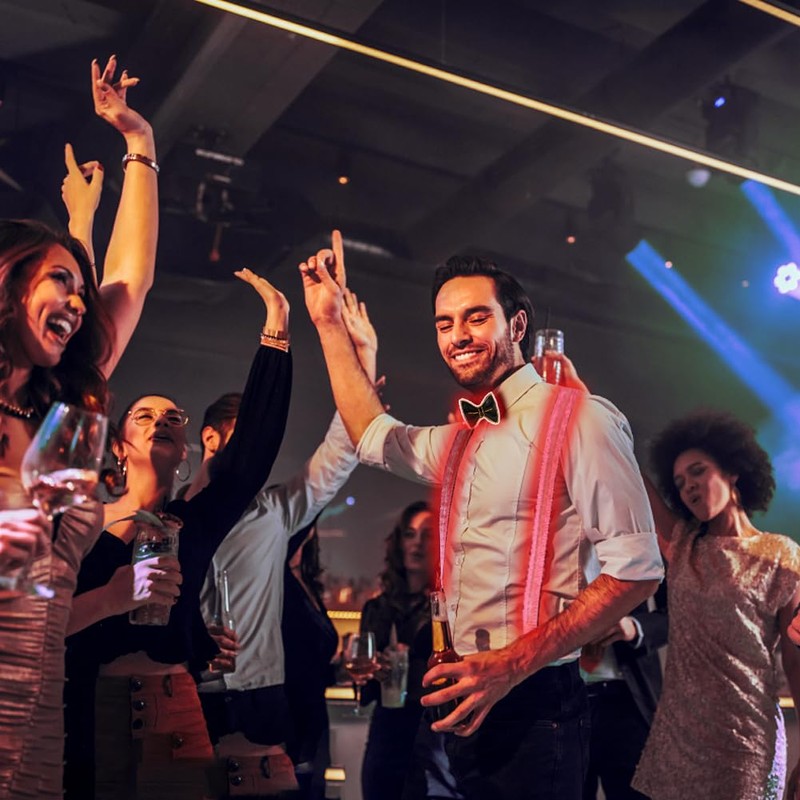 - Stylish Design The stylish design of these luminous LED suspenders + luminous bow tie makes you stand out and become the center of attention on any occasion.