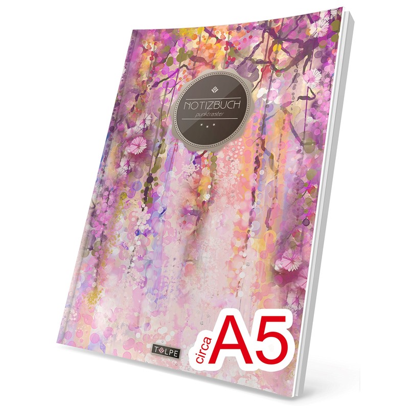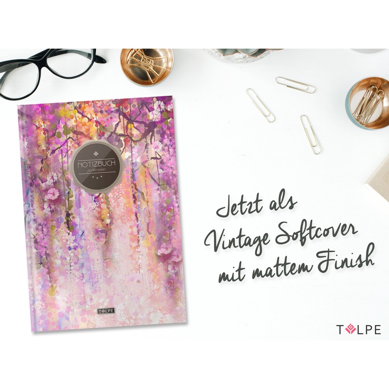 TULPE Punktraster Notizbuch: Ca. A5 „C058 Frühjahr“ (Vintage Softcover, Register, Punktkariertes Papier - Bullet Journal, Notizheft, Skizzenbuch, Tagebuch, Gepunktete Seiten, Dot Grid Notebook)