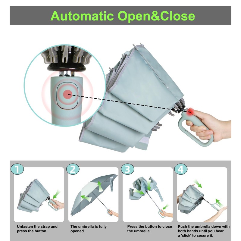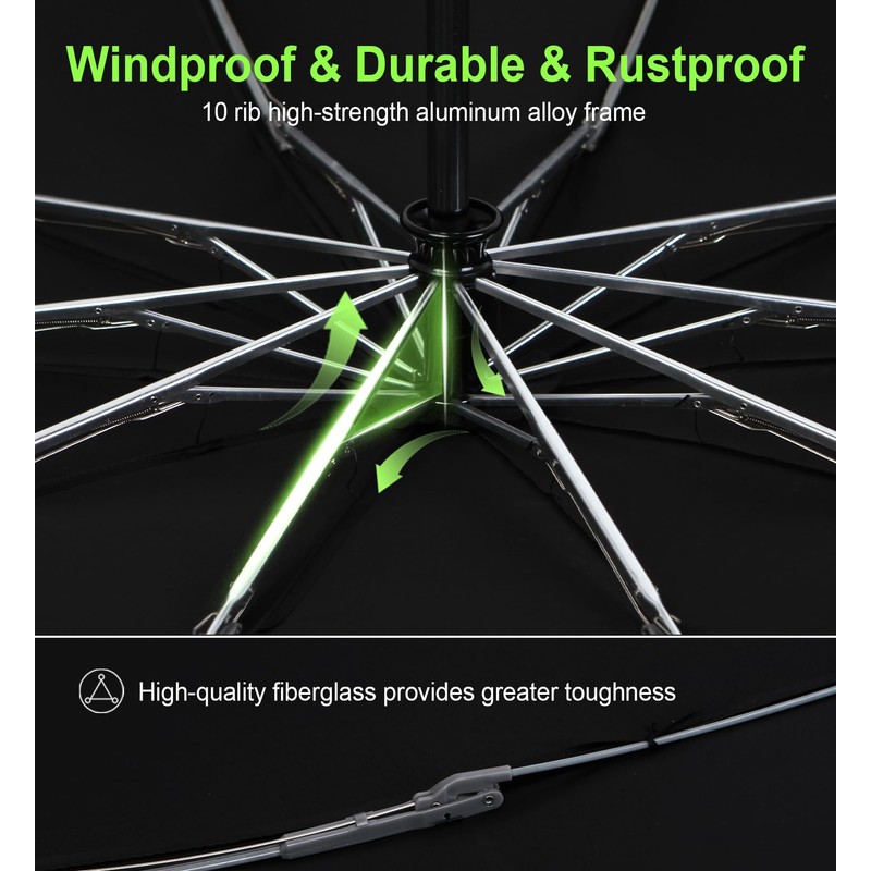 - Auto Open & Close - Convenience at your fingertips designed with an auto open close button, this folding umbrellas delivers quick and effortless operation. Ideal for busy individuals, the automatic open-and-close feature provides instant protection during rainstorms or high winds, making it a must-have travel umbrella windproof strong for all weather conditions
