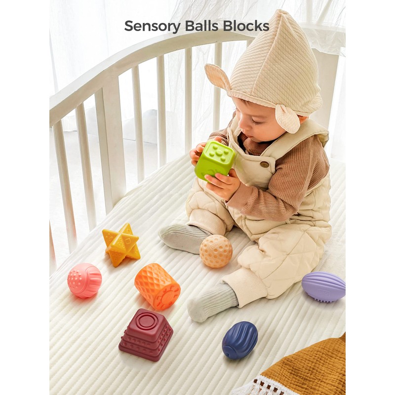 - Touch and Feel The baby toy sets have different textures for tactile exploration and sensory development. The bright colours of the sensory balls are ideal for visual stimulation and can stimulate your baby's imagination.