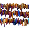 - Titanium coated crystal points loose beads, top drilled, graduated, 15 inches strand. Crystal point size:approx 12-35mm(0.45-1.35 inches) in length, 3-4mm(0.12-0.15 inches) in width. Weights approx 50-100 grams per strand.The quantity of points you will receive depends on the size of each point, it may vary from each strand. Since it's titanium coated from natural rock crystal quartz, all beads are unique, please expect a slight variations in size, shape, texture and color of each beads.