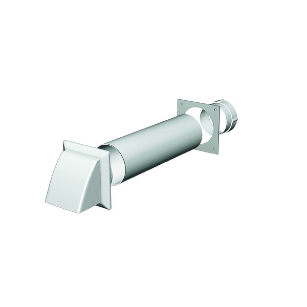 This through wall tumble dryer vent kit comes with a white cowl style outlet. A free moving flap rises when air is being expelled and closes when not in use to help reduce blow back.