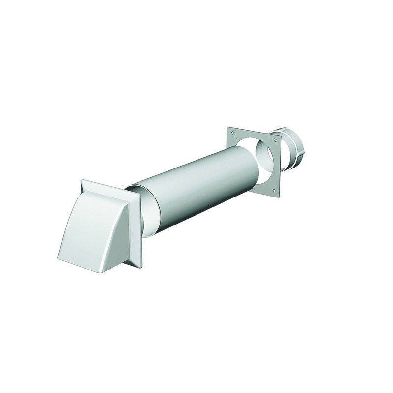 - COMPLETE KIT - 1 x Cowl, 1 x Wall sleeve tube, 1 x Wall plate,1 x Threaded hose connector, 8 x wall plugs, 8 x screws.