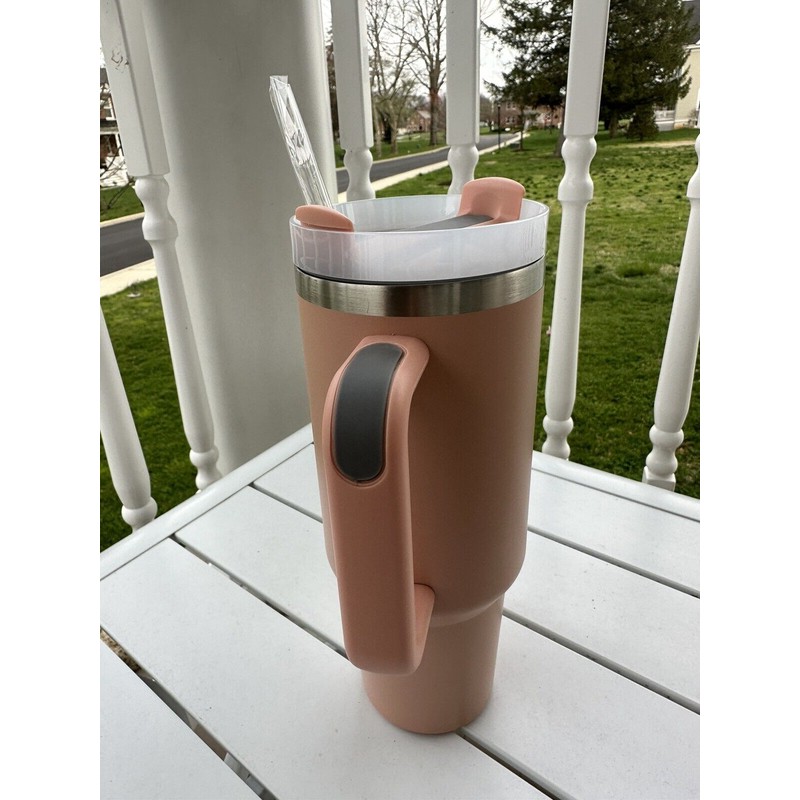 40 oz stainless steel tumbler Cup with handle. Light Pink