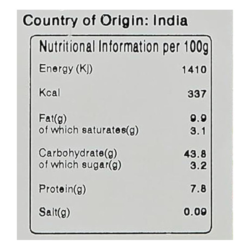 - Allergen Information Packed on premises that handles nuts, seeds, cereals, soya & products containing gluten.