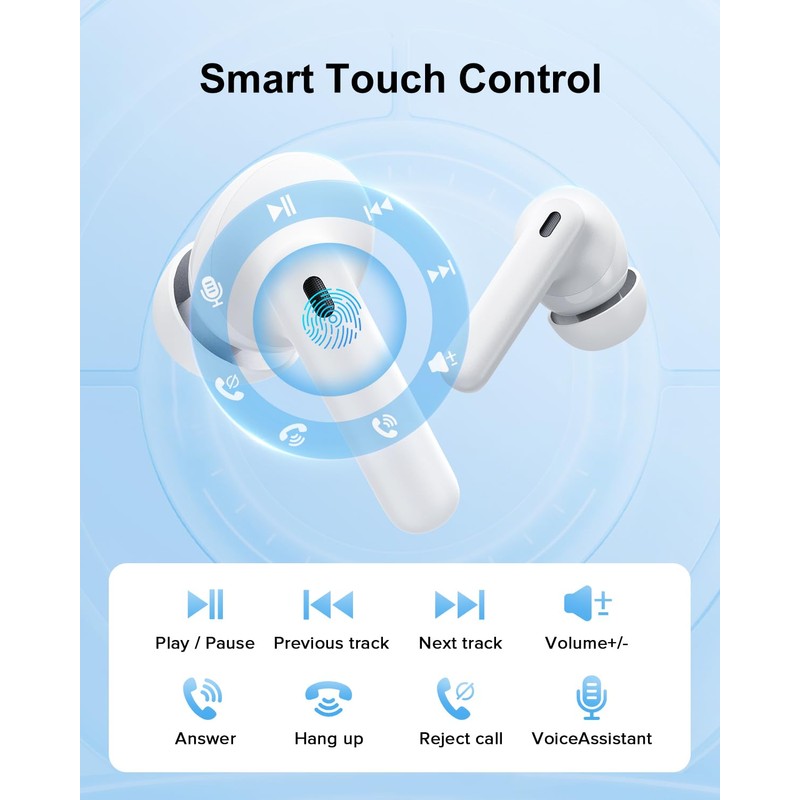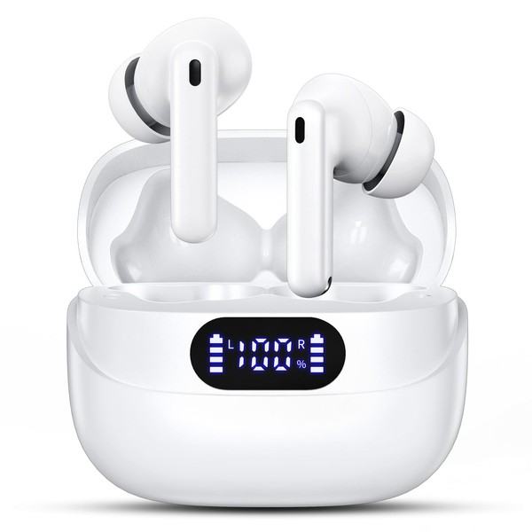 TUMJUN Wireless Earbuds, 42H Playtime Bluetooth 5.3 Headphones, HiFi Stereo Call Noise Cancelling Earbuds, IPX7 Waterproof Stereo in-Ear Earphones with LED Display for iOS Android (White)