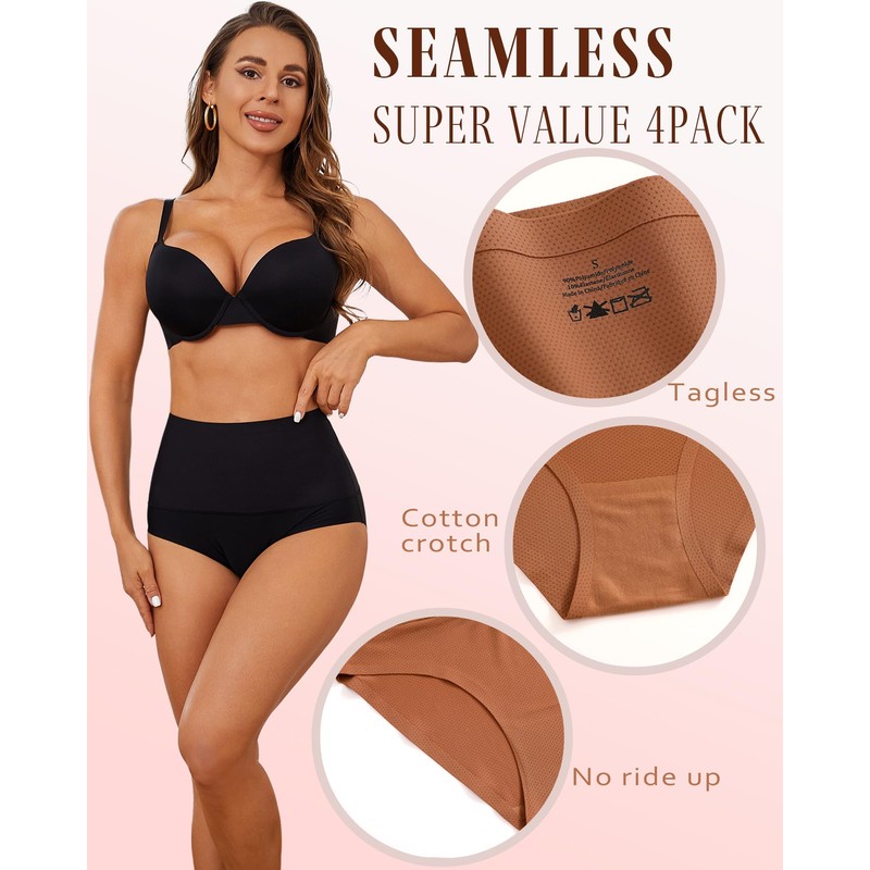 Tummy Control Underwear for Women High Waisted Briefs Seamless Full Coverage Ladies Panties 4 Pack S-XXXL