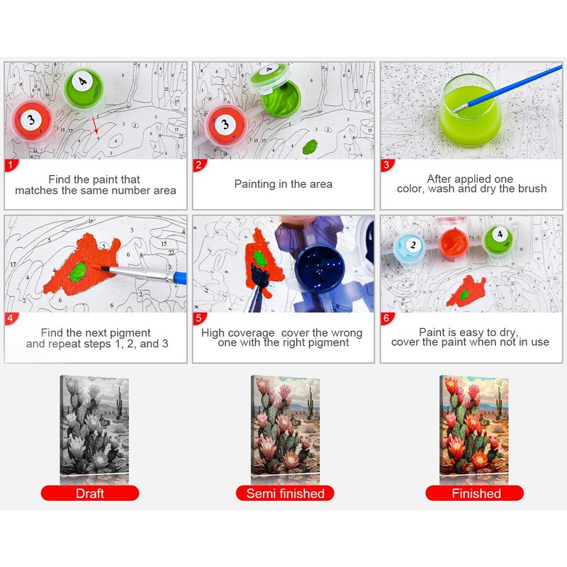 - 【Paint by Number Kits】Paint by number set included 16"x20"(40x50cm) numbered canvas, 3 brushes, 1 set of acrylic paints to paint the canvas. You can paint directly without needing to prepare additional tools.