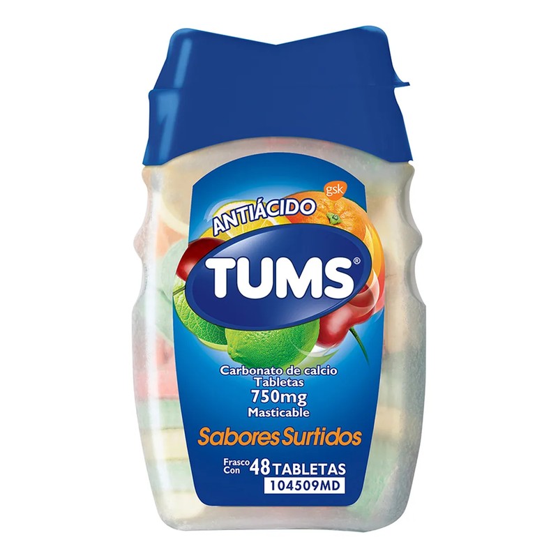 ✔ Dosis reforzada: Carbonato de calcio 750 mg por tableta (50% más vs. Tums regular)