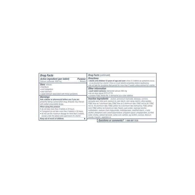 - Gluten Free: This heartburn and acid indigestion remedy has the active ingredient 1000 mg calcium carbonate