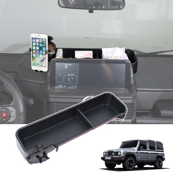 Tumukiw Dash Storage Tray Insert Behind Screen Organizer Storage Compatible with INEOS Grenadier 2020-2025 Accessories, New Upgraded Dashboard Tray with Cell Phone Holder Organizer Container (Style B)