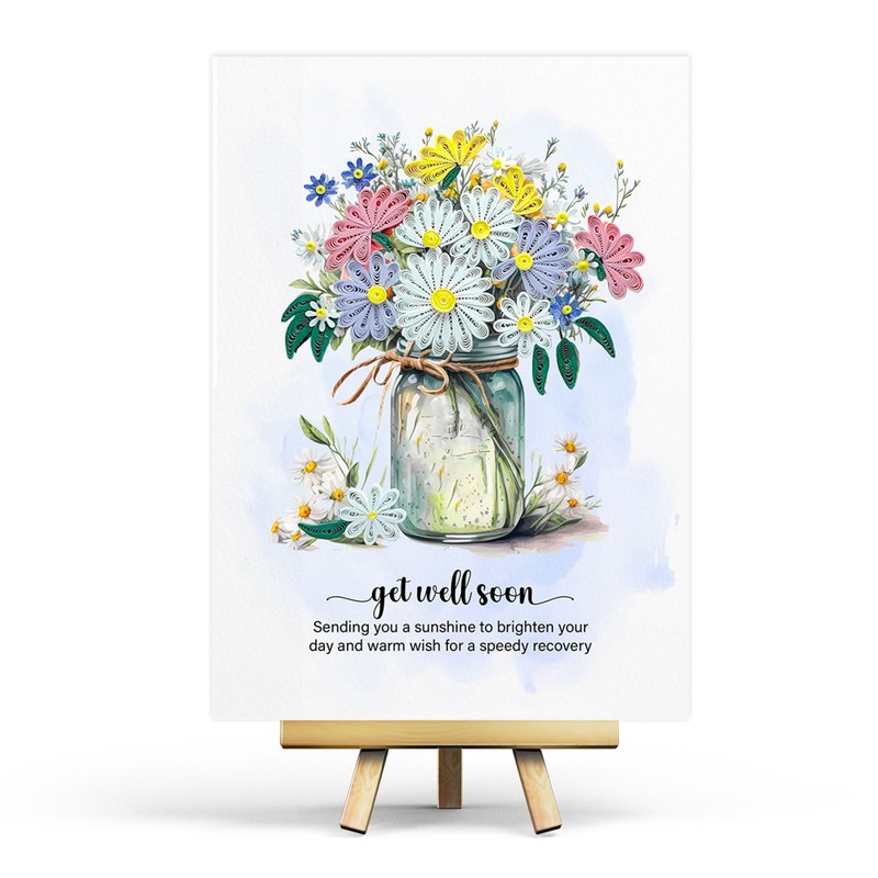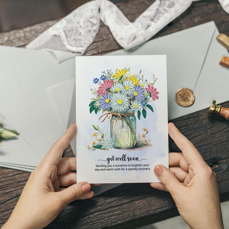TUMYBee Get Well Soon Greeting Card, Flower Card for Get Well Soon, Speedy Recovery Card, Feel Better Card, 3D Quilling Card for Mom, Daughter, Grandma, Friend, Boss, Love with Envelop (Daisy)