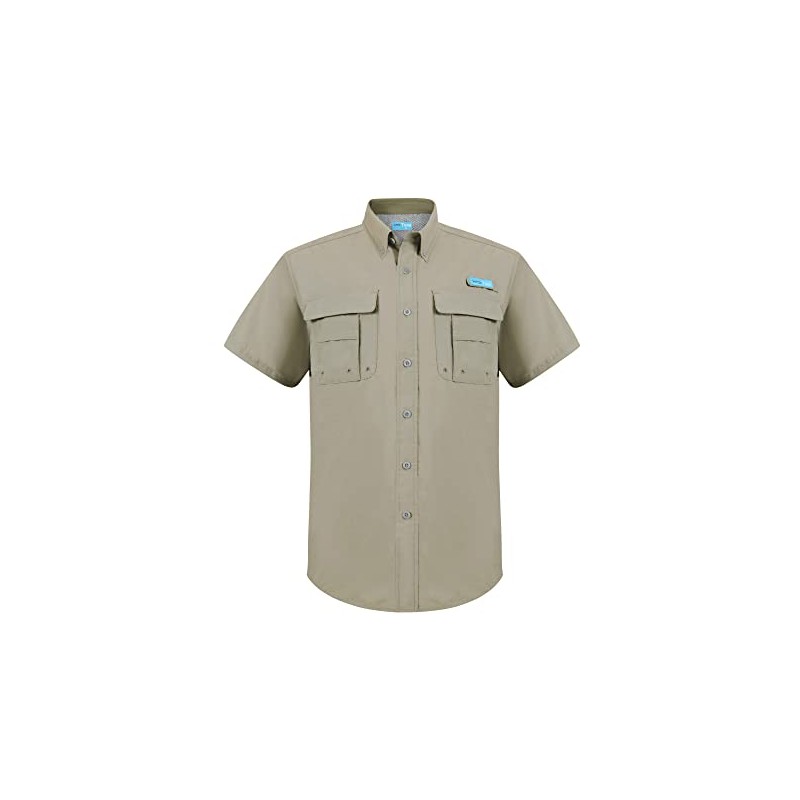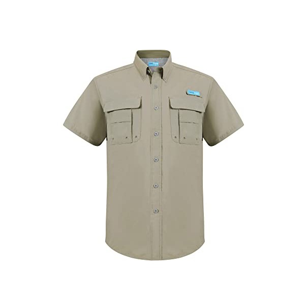 Tuna Men's UV UPF 50+ Sun Protection Soild Anti-Static Waterproof Breathable Fast Dry SPF Hiking Fishing Short Sleeve Shirts (1# L Fossil)