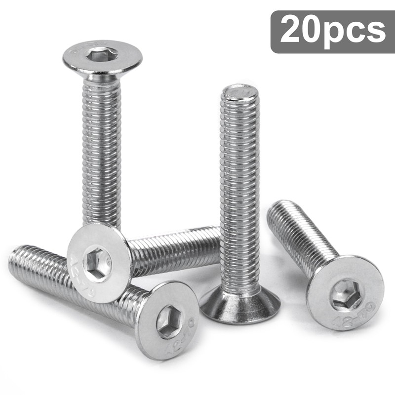 - Specifications: 20 pieces M6 x 35 mm countersunk screws. Head Shape:Countersunk Head Drive Type: Hex Socket Standard: DIN 7991. Equipped with an Allen key to meet daily needs