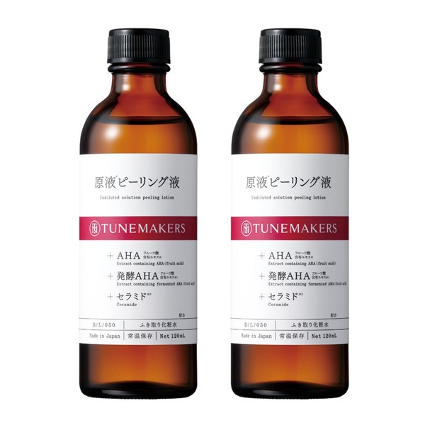 TUNEMAKERS Wiping Lotion, Unprocessed Solution Peeling Liquid, 4.2 fl oz (120 ml) x 2 Piece Set, Pore Care, Alcohol Free, Wiping Lotion, Ceramide AHA