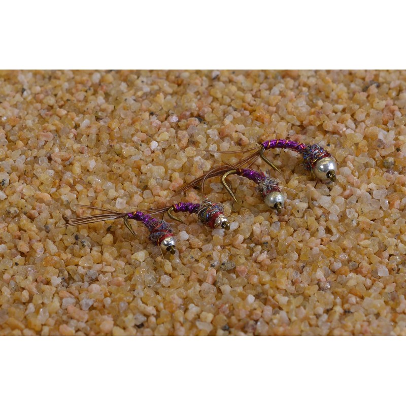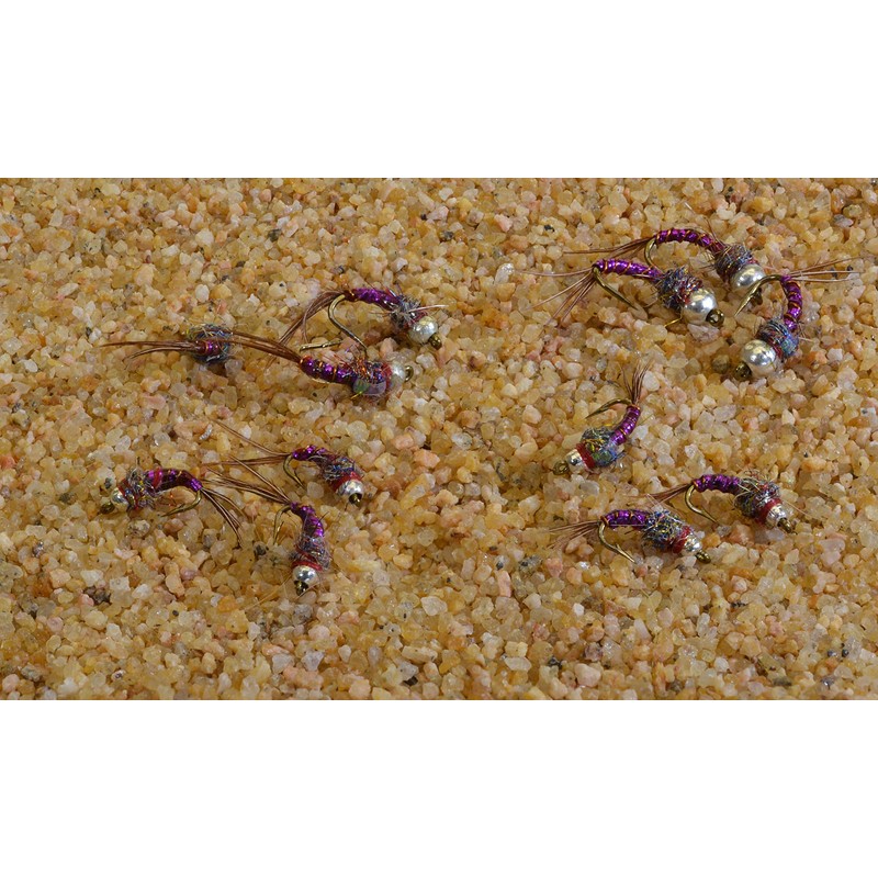 Tungsten Bead Purple Rainbow Warrior Midge Nymph Fly | 12 Flies | Mustad Signature Hooks (Hook #18)