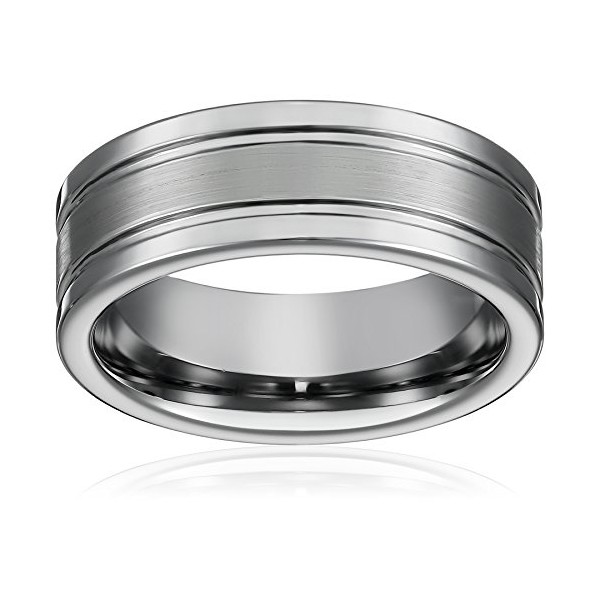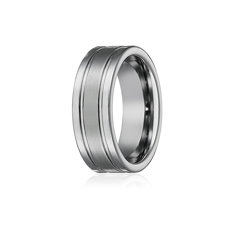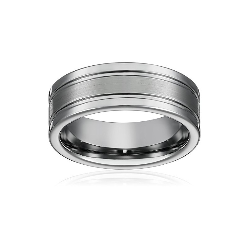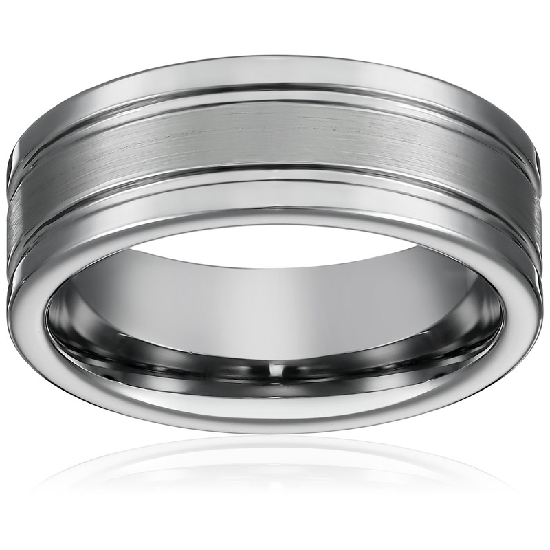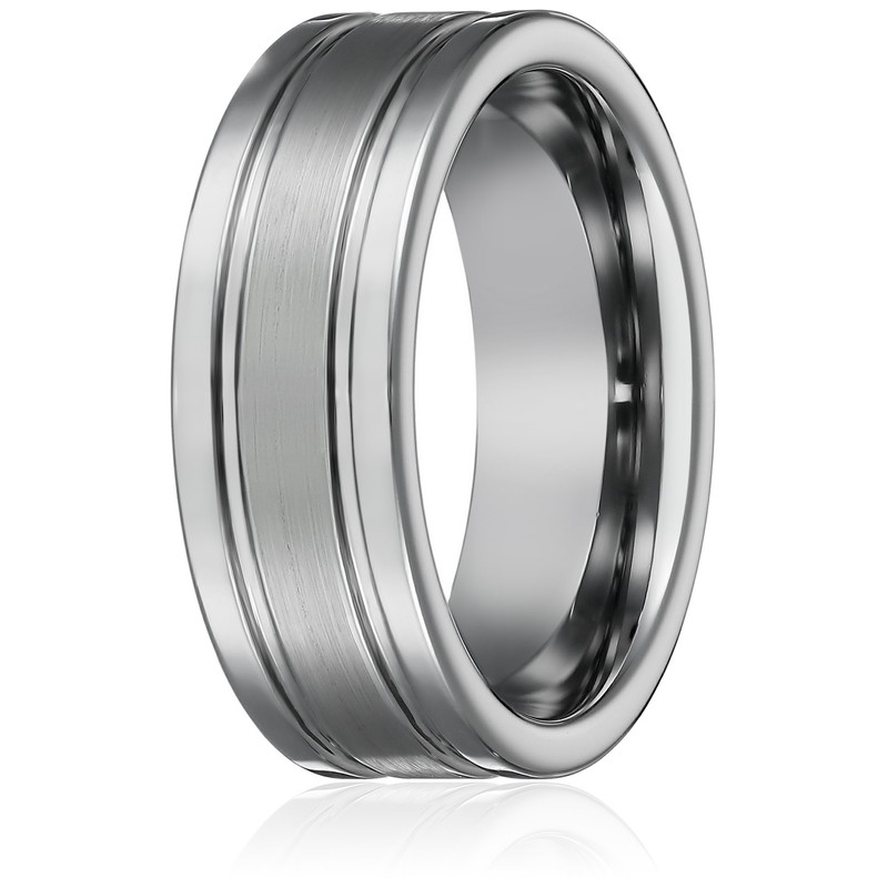 • This Tungsten Wedding Band Flat 2 Grooves Matte Center Pipe Cut with Polished Grooved Edges
