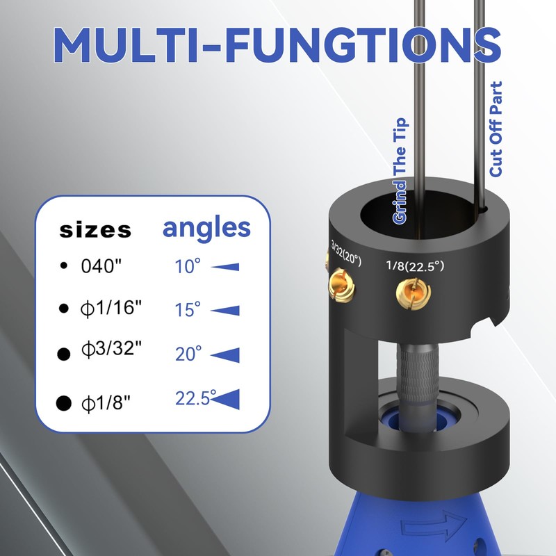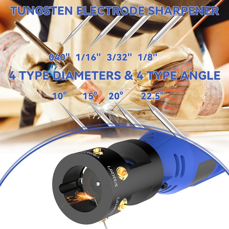 - 【Pro-Grade Precision Sharpening】Engineered for flawless TIG welding, this tungsten sharpener features 5 diamond-coated wheels to precision-grind electrodes (0.04"-1/8") with 4 adjustable angles (10°/15°/20°/22.5°). The aircraft-grade aluminum grinder head with 4 brass guide screws eliminates vibration for ultra-smooth arc starts every time.