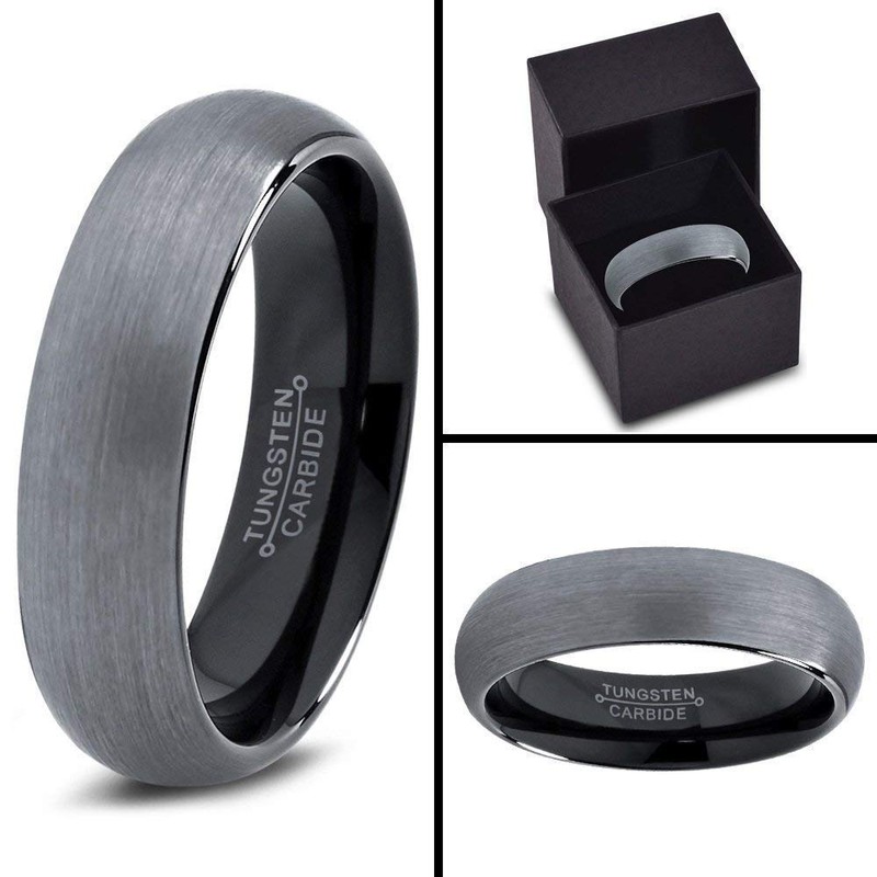 Tungsten Wedding Band Ring 6mm for Men Women Comfort Fit Black Enamel Domed Brushed Custom Laser Engraving