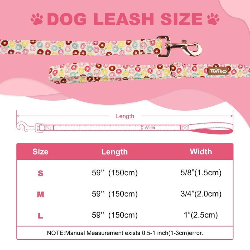The donut design is playful and colorful, making it a perfect choice for dogs with a sweet and cheerful personality. Whether you're taking your dog for a walk in the park or simply spending time at home, the Tunkoo donut dog collar leash will make sure your pet looks stylish and adorable.